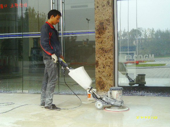 再到80年代末,緣自歐洲程序的一種工藝,“晶面處理系統(tǒng)”于90年代推進(jìn)中國市場。這個(gè)系統(tǒng)就是針對水蠟工藝上硬度、光澤、清澈度不夠及工藝復(fù)雜等不足改良而成的,其工藝原理就是在石材投入使用及未受磨損前,以幾種水晶加強(qiáng)劑配合機(jī)械,利用石塊籍壓于熱力產(chǎn)生之化學(xué)作用,先將石材表層下的氣孔封閉,使其污垢不能滲入,同時(shí)表層上加上幾層熱處理保護(hù)層,起到增加石材表面的硬度和光度,更有防滑之功效,石質(zhì)原有天然色澤得到帶出及全面性保護(hù),保持度教一般水蠟高幾倍。長期使用,耗用的人力物料成本較水蠟低,無須每天補(bǔ)蠟及定期起蠟等復(fù)雜工序,此工藝為目前大理石保養(yǎng)及翻新后晶面的理想工藝,我們稱為石材打蠟第三代。